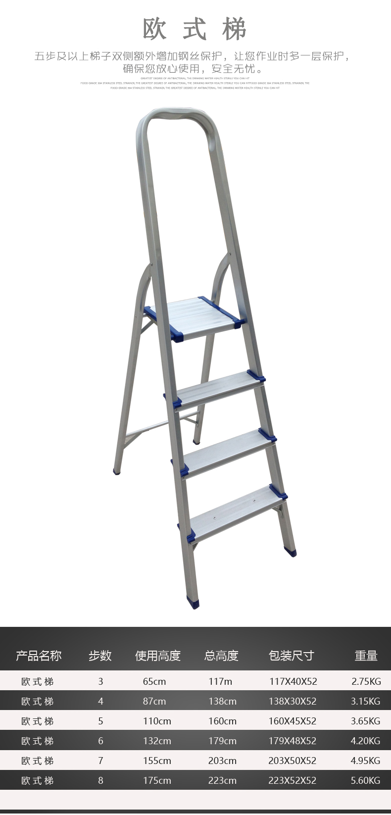 • 踏板铝合金防滑踏板设计踏板边护塑胶,美观